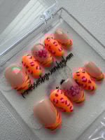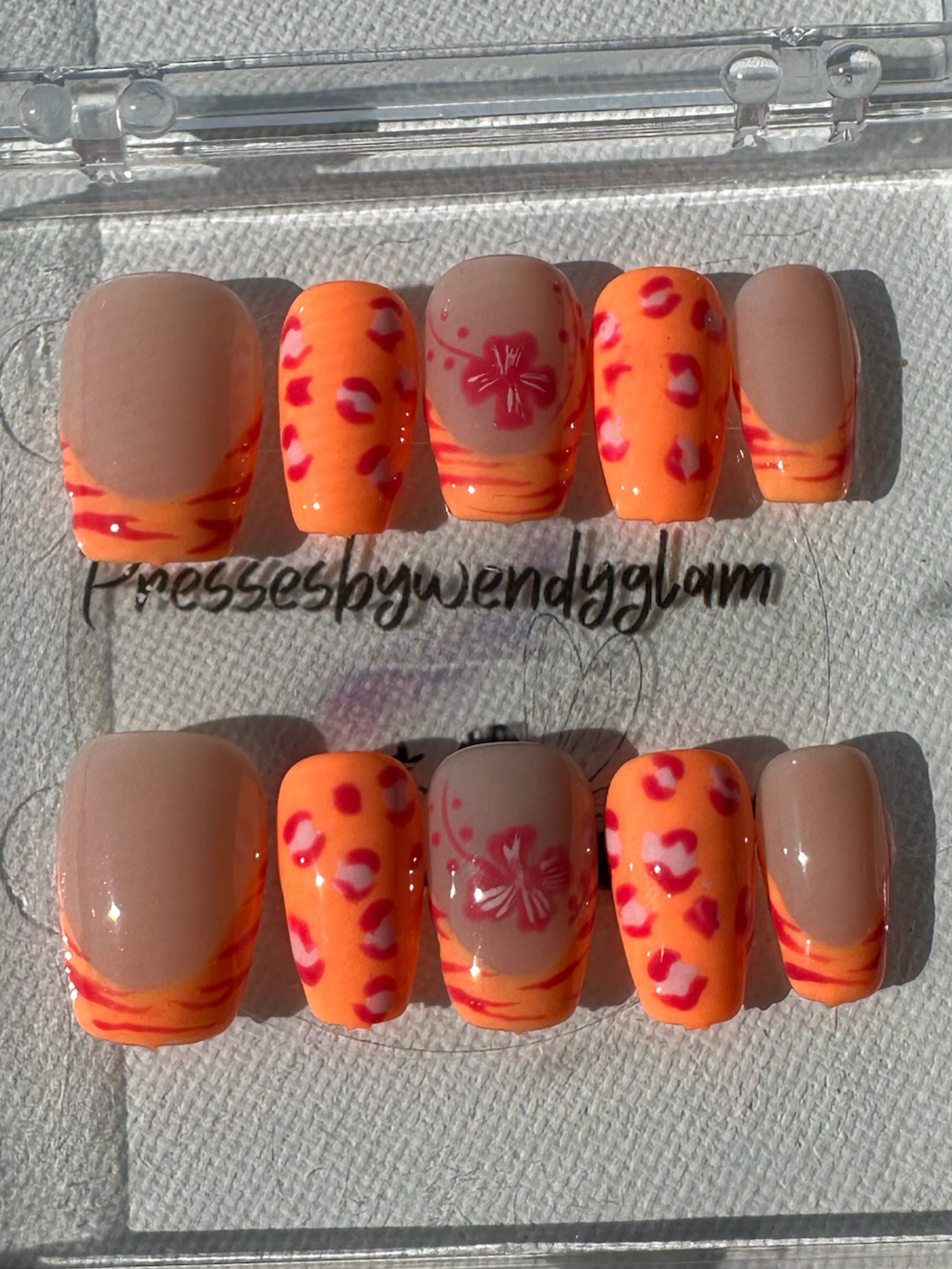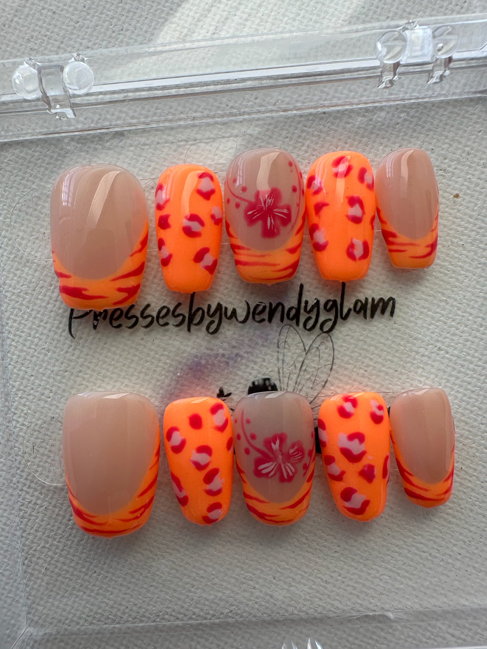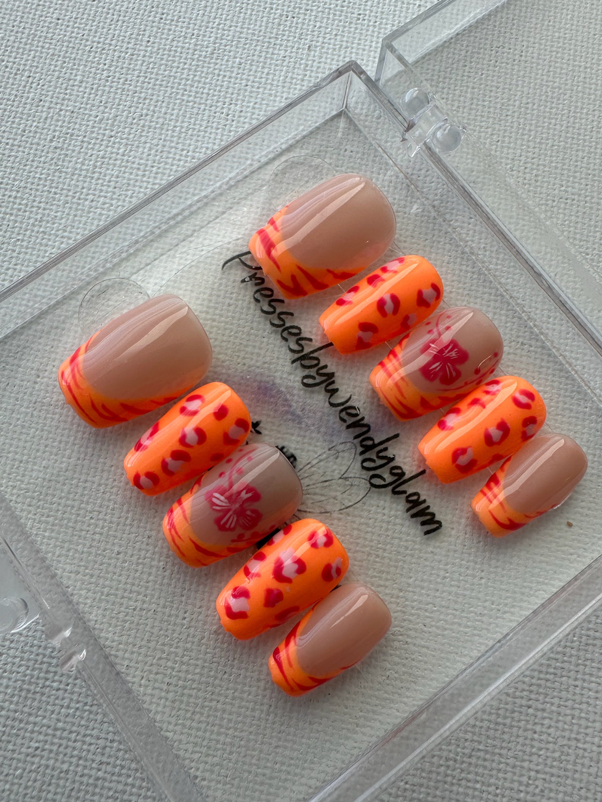 Warm nude and vibrant orange tones come together with playful leopard prints and a soft floral accent. This set feels bright, cheerful, and full of sunset-inspired charm perfect for a fun, eye-catching look