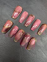 A rich mauve cat eyes shimmer set trimmed with metallic gold accents and crystal gems, giving the perfect balance of elegance and luxury perfect for this fall season