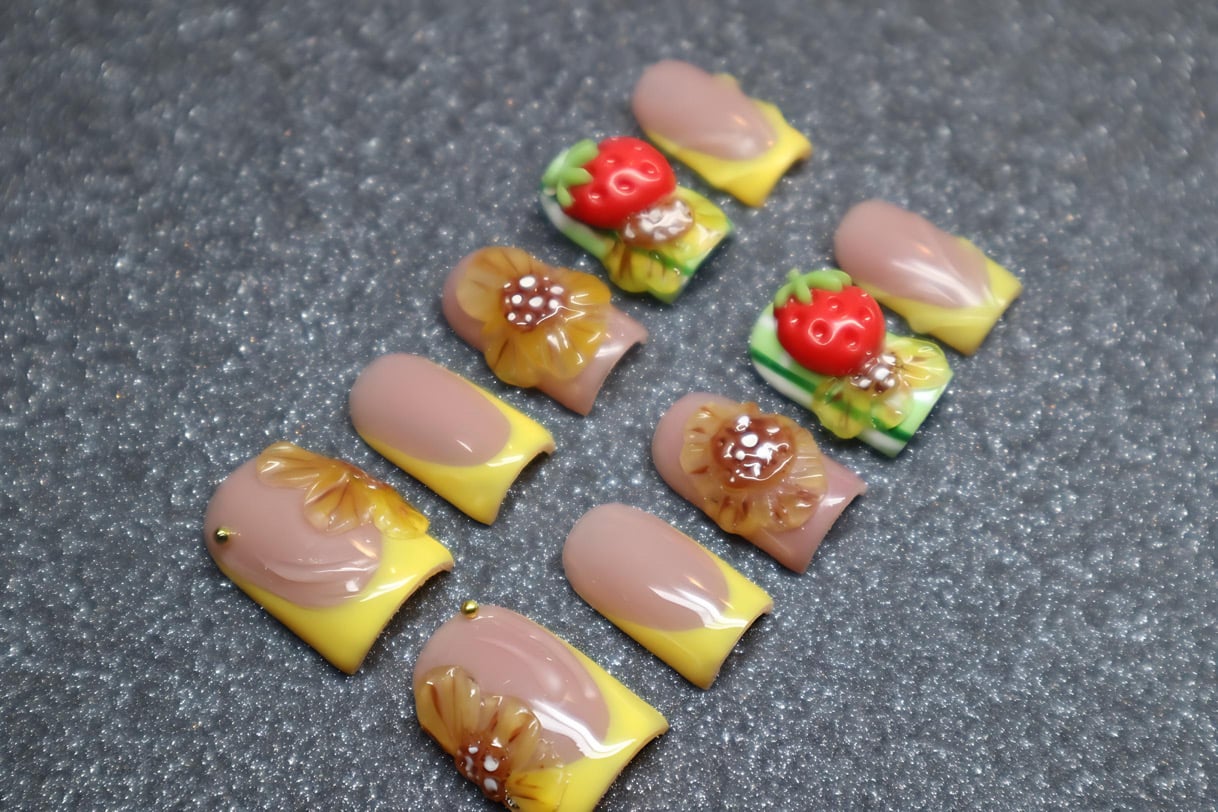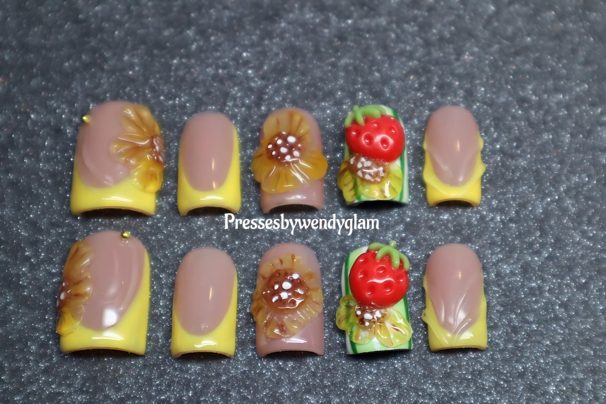 This cheerful set brings together the best of late summer and early fall with 3D sunflowers, bold strawberries, and soft nude-yellow tones. Perfect for harvest festivals, farmer’s markets, or just brightening up your day with playful, fruity charm
