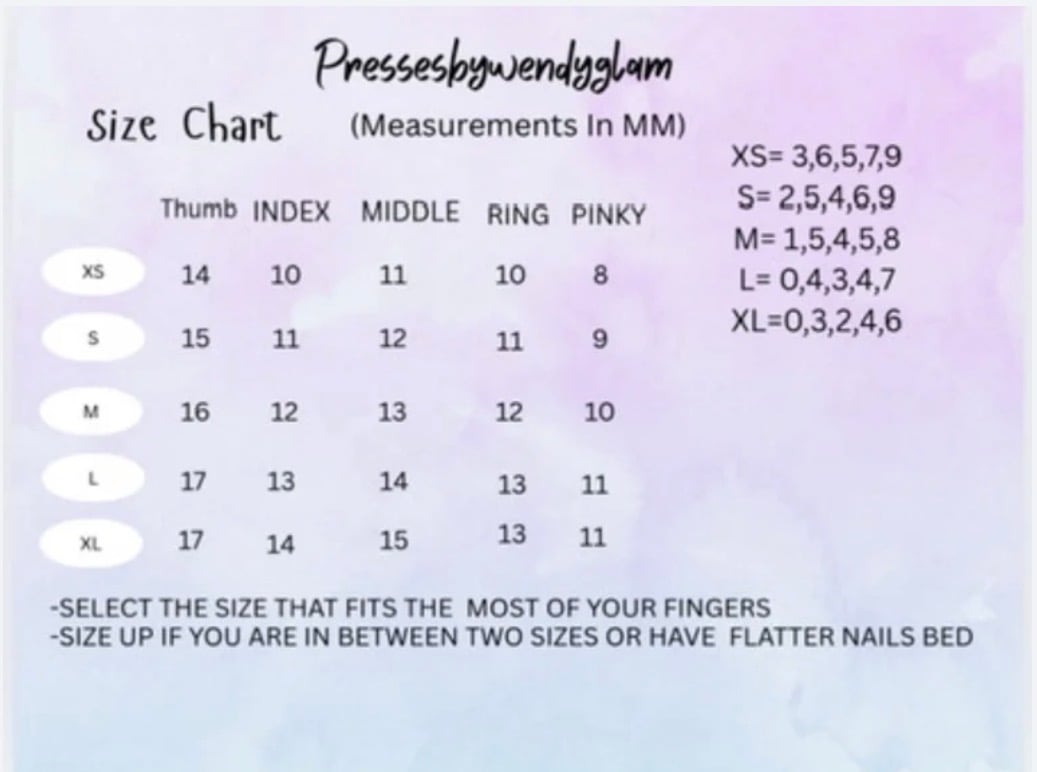 ** Depending on the style and Design, some press - on sets are not recreated base on certain length and shapes.